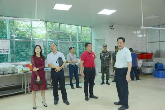 ▲ 调研组一行进入基地食堂和餐厅检查工作。