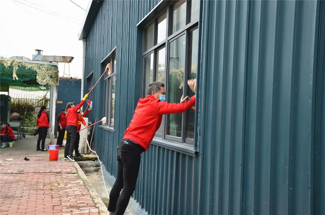 开工仪式结束后,全体员工打扫基地卫生!干干净净准备开门纳客!